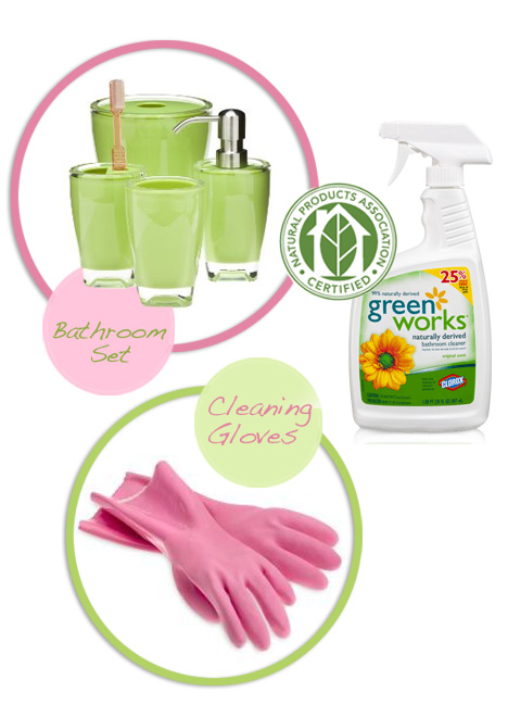 The fun part is that Clorox Green Works offered to do a giveaway of the bathroom cleaner so one of you can try it too (if you haven’t already)!! PLUS a beautiful bathroom set and cleaning gloves!! Pretty cool right?!