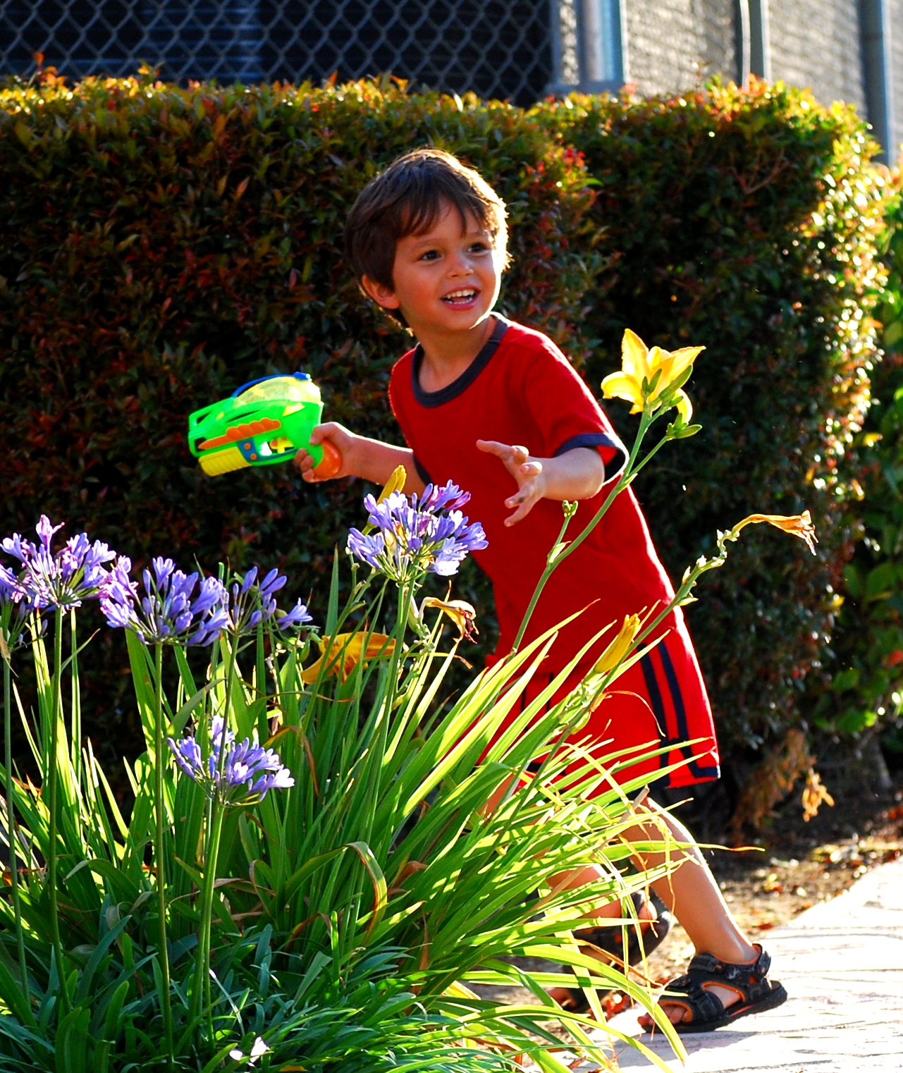 Having fun with a water gun! Divirtiéndose con la pistolita de agua!