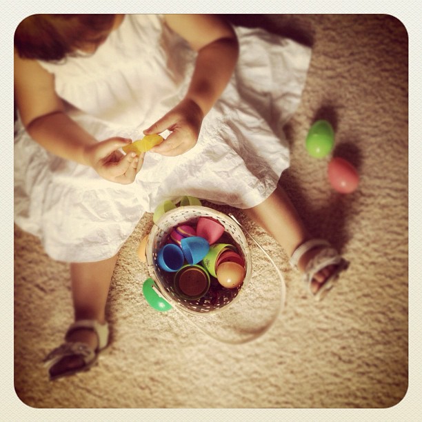 They were so cute!! Specially Maya, she was very excited and gave eggs to Adrian too, they both shared their finds. The finally it was time to sit and open up the plastic eggs!