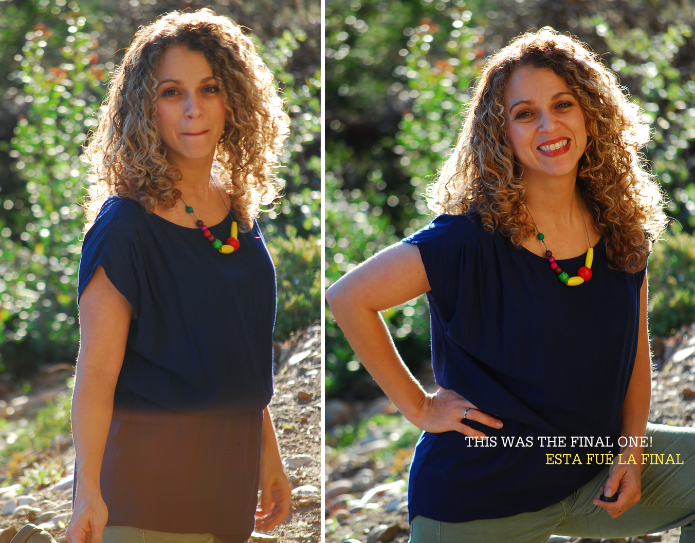 Una vez que empezé, traté varias posiciones, disparé muchas muchas veces y fuí varias veces a la cámara a ver que tal estaban quedando. Traté diferentes sonrisas, miradas y ajustaba la luz y la posición de la cámara, ensayo y error, error y ensayo y error y error…