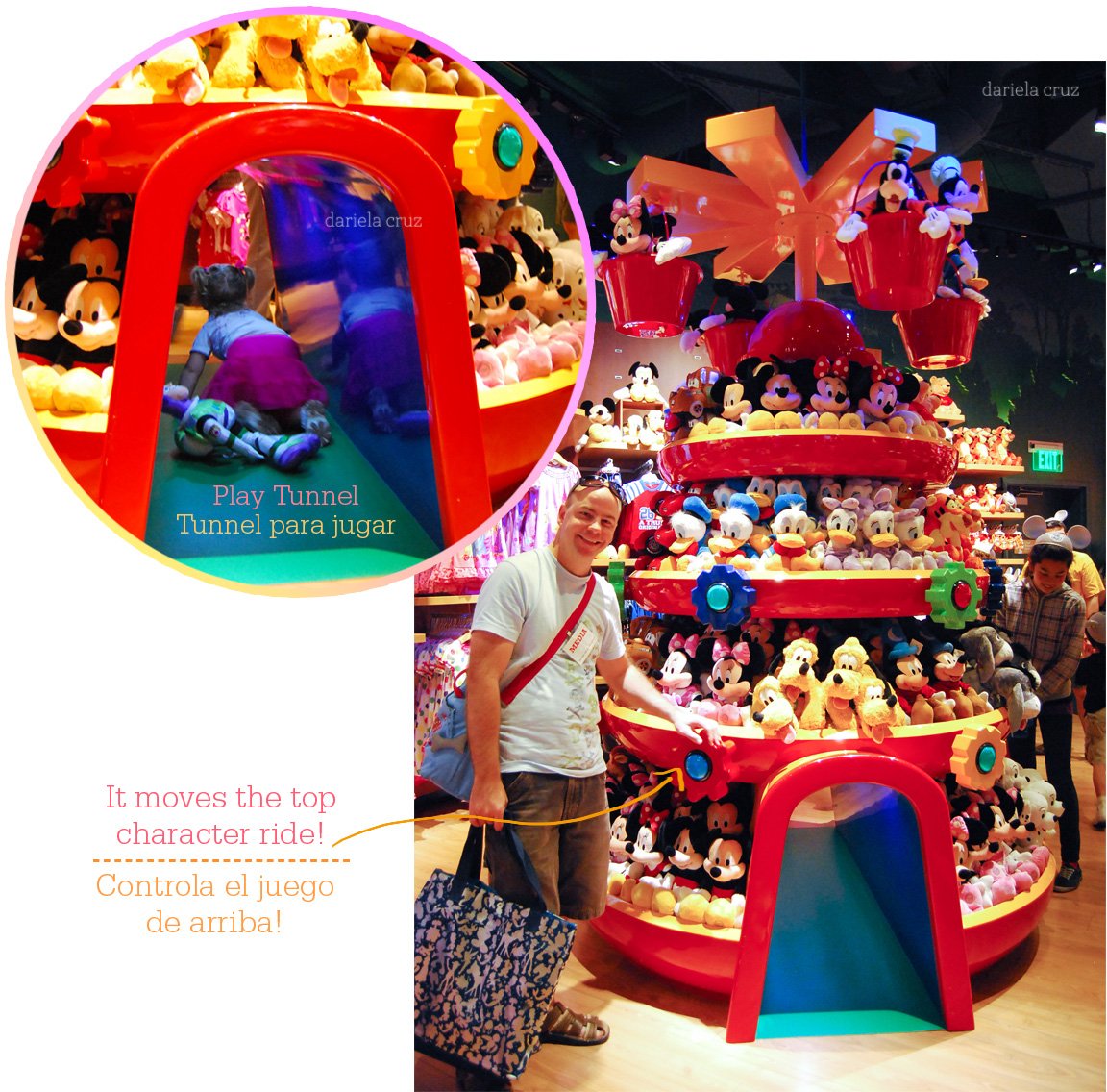 Me encanta siempre la atención a los detalles que tiene Disney en todas partes de la tienda, por ejemplo los espejos tienen un marco de árboles y la parte de arriba de las paredes está decorada con siluetas de cuentos de Disney bien bonitas, no hay ningún espacio que se deje sin tocar. También hay momentos es que se hace un “show” inesperado en la tienda, te llega de repente y es divertido!