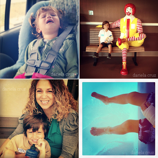 Top Left: Mid-tantrum and 2 seconds after this she fell asleep! Oh being 2 is hard!! Top Right: A picture with Ronald Mami! Bottom Left: Waiting to go in for his second day of camp. Bottom Right: Only his feet. — Arriba Izq: En el medio de una pataleta se quedó dormida así! Tener 2 añitos es dificil! Arriba Der: Una foto con Ronald mami! Abajo Izq: Esperando para entrar a su segundo día de campamento. Abajo Der: Sólo sus pies.