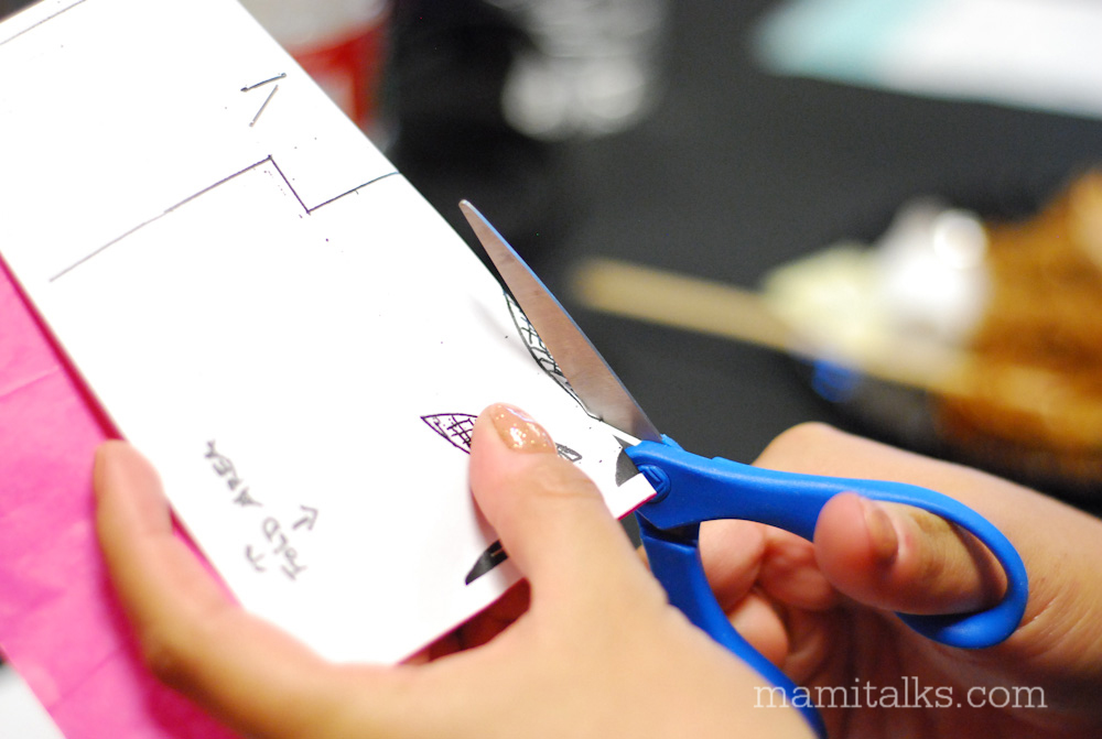 - Con tijeras, recorta alrededor de las lineas de tu diseño, asegurándote que las hojas no se muevan. Si hay algún detalle pequeño en tu dibujo, puedes usar una navaja .