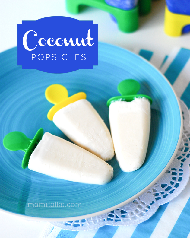 It’s been a loooong time since I don’t make any homemade popsicles for the kiddos, and I love this recipe I have for handmade popsicles, coconut ones. I made them once at a party and everybody loved them (
