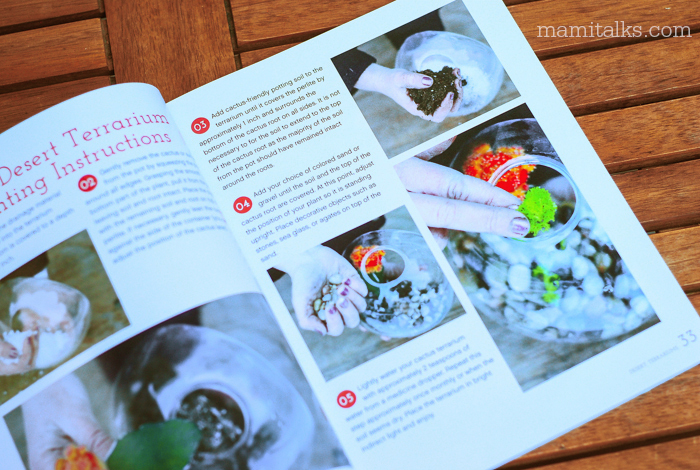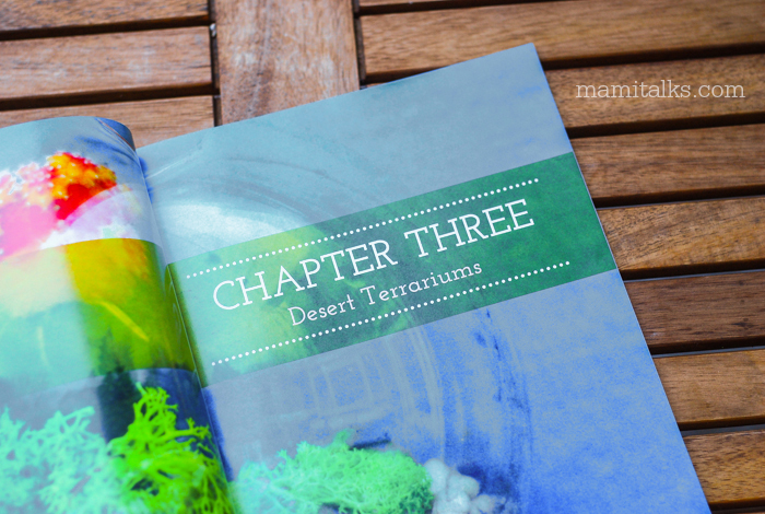 Hay terrarios de Tillandsia, terrarios desérticos y terrarios tropicales. También hay un capítulo para hacer terrarios para niños. Trae instrucciones paso a paso para hacer todos los terrarios del libro. Creo que mis favoritos son los de las Tillandsia (las plantas de aire). Quiero hacer uno pronto! Cuáles crees que te gustan más a ti?
