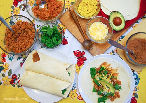 Lo que gusta mucho es el hecho de poner todos los ingredientes en la mesa para que cada quien se sirva (y yo ayudo a los niños claro) pero así cada quien decide que tanto le pone de cada cosa y nos sentimos como que estamos en una pequeña fiesta comiendo estilo buffet!